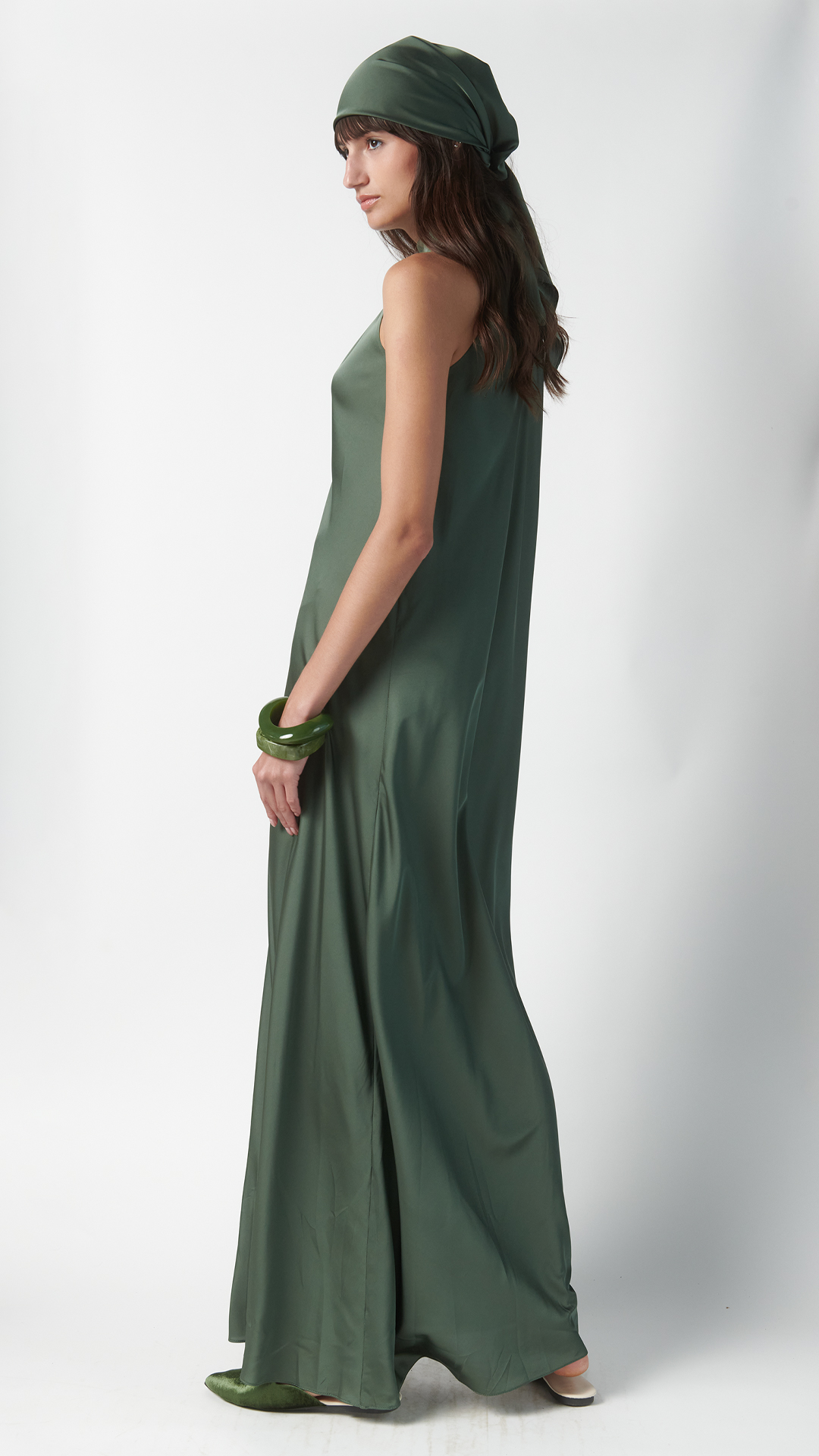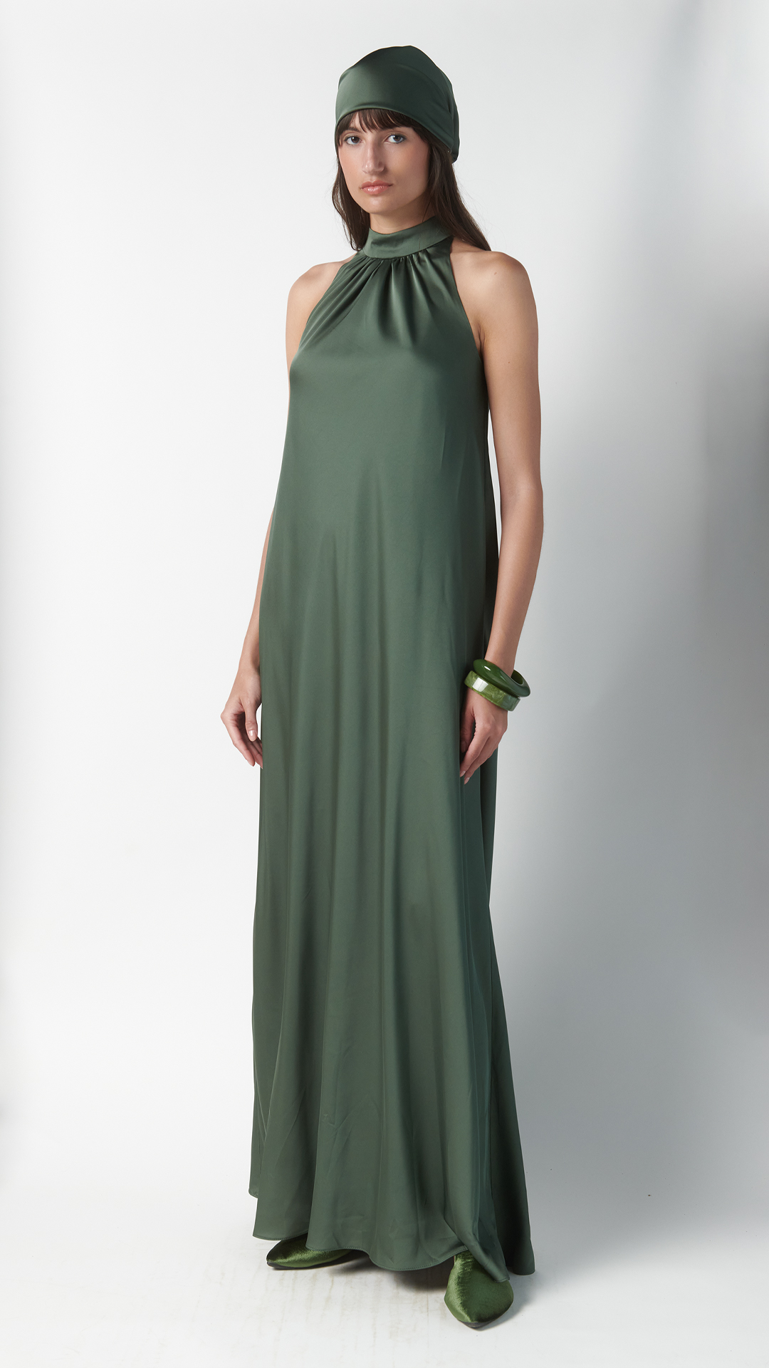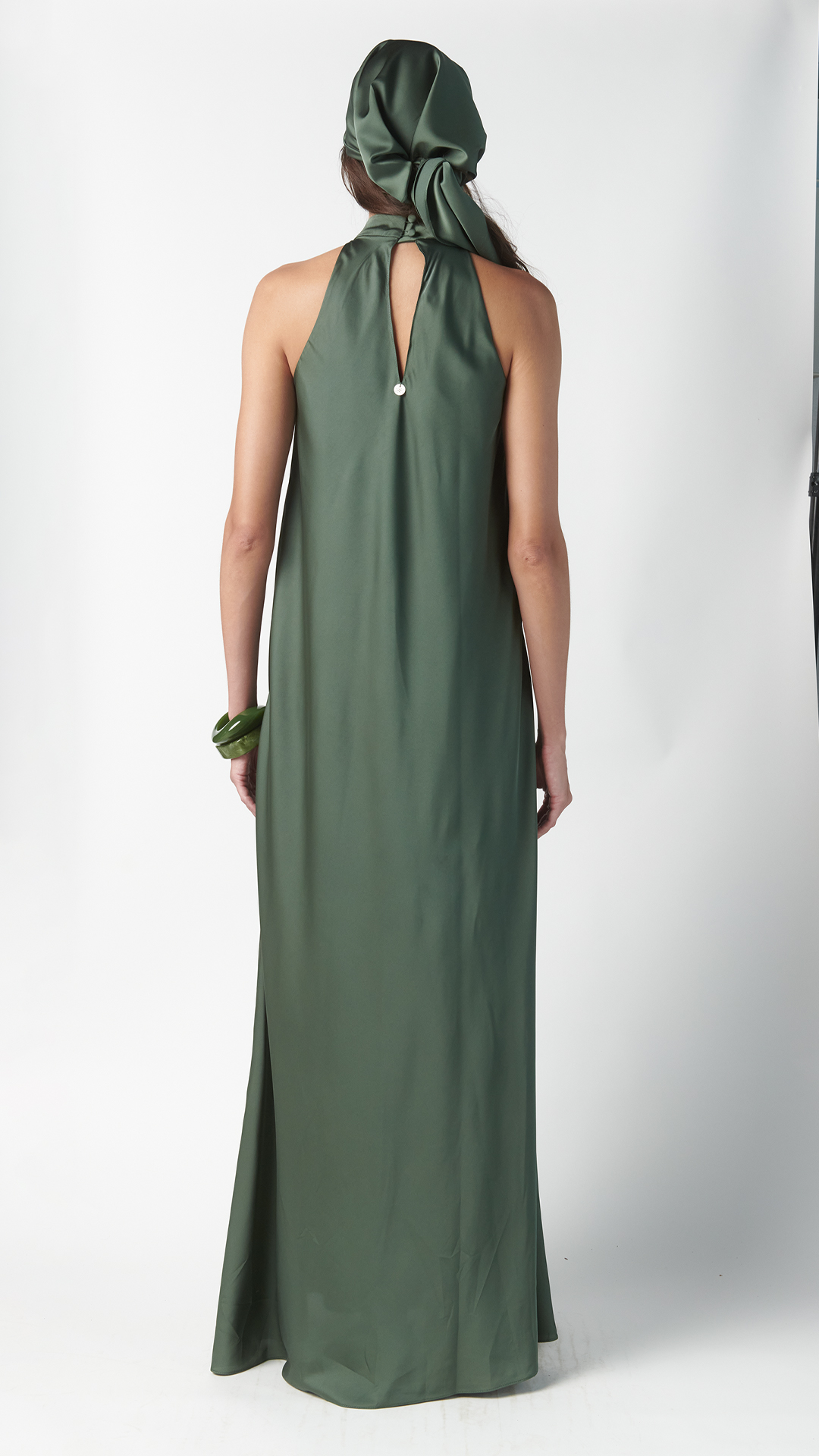 Abito in seta verde oliva