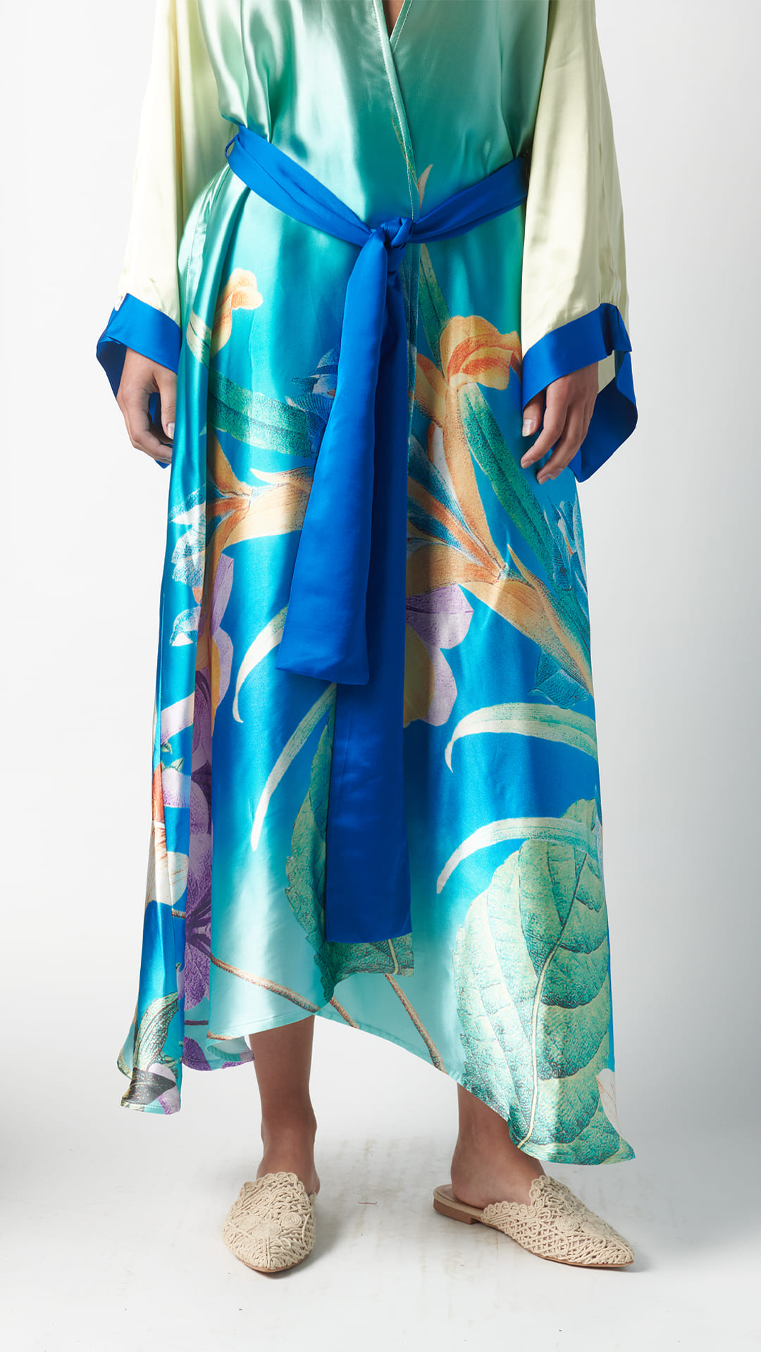 - Taglio kimono con maniche molto ampie